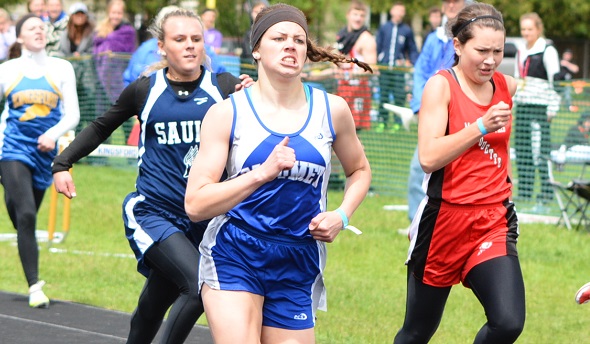 PHOTO: Chelsea Jacques powers to the finish during one of her sprint championship wins at the 2015 UP Division 1 Finals. (Photo by Cara Kamps.)