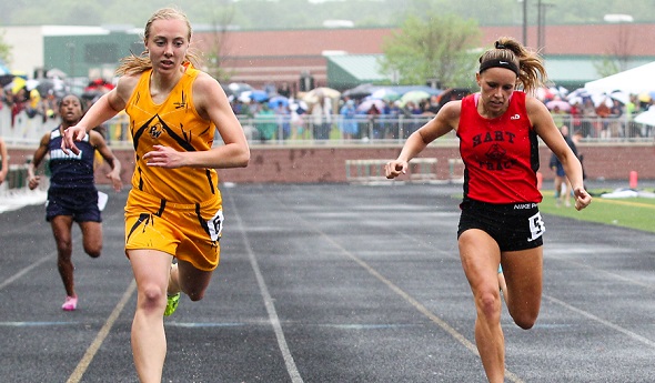 Jokela, a Grand Valley State recruit, became a triple-winner by taking the 100 hurdles (15.98), 300s (46.46) and 400 (59.84).
