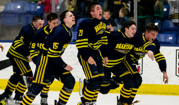 In the end, there was no doubt which team was the best in the division. Hartland (27-4) beat Brother Rice, 6-2, in the Semifinals before outshooting the Trojans, 44-13, in a dominant performance in the title game.