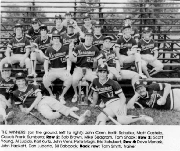 North opened the championship game scoring with three quick runs in the first inning. Kimball made it 3-1 in the bottom half of the inning, then grabbed a 4-3 lead in the third as 6-foot-4 senior Dave Kopf, (a 32nd-round draft pick of the Detroit Tigers one week earlier) crushed a three-run homer. North tied the game at 4-4 in the sixth when junior Bill Babcock led off with a double, moved to third on a sacrifice, then scored when the throw to first base on Keith Schatko’s suicide squeeze bunt went wild. Following a pop out, Costello picked up his first RBI on the day, on a double over the left fielder’s head that scored Schatko, giving North a 5-4 lead.