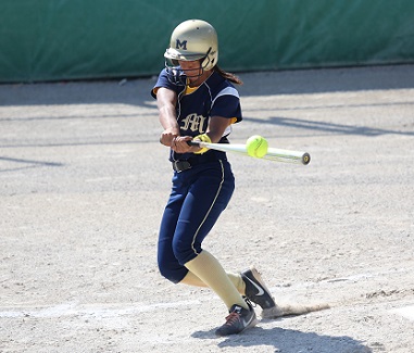 PHOTOS: (Top) Bay City Western rightfielder Madison Brewer holds up the ball as evidence off a catch in the Warriors' 1-0 win over Garden City. (Middle) A Mattawan hitter makes contact during the Wildcats' Semifinal win over Romeo. (Click to see more from Hockey Weekly Action Photos.)