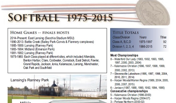 But as we begin this summer series of features on MHSAA tournaments from our spring issue of benchmarks, we'll kick off with softball and editor Rob Kaminski's look at the tournament's first 31 seasons.