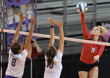 Imposing their will at the net with the 5-foot-10 Sophie Strieff (14 kills), 6-foot Ferland (14 kills) and 6-foot Alex Randall (16 kills), the Wolfpack looked the part. And they stunned the back-to-back champs, never trailing after tying the first game as the trio up front fired at the Vikings from all different angles.