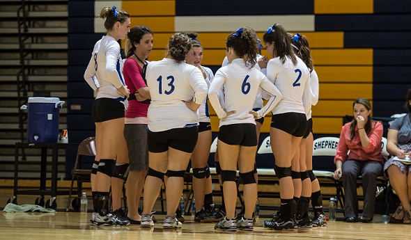 PHOTO: Beal City huddles during a break in its match against Shepherd this season. (Click to see more from HighSchoolSportsScene.com).