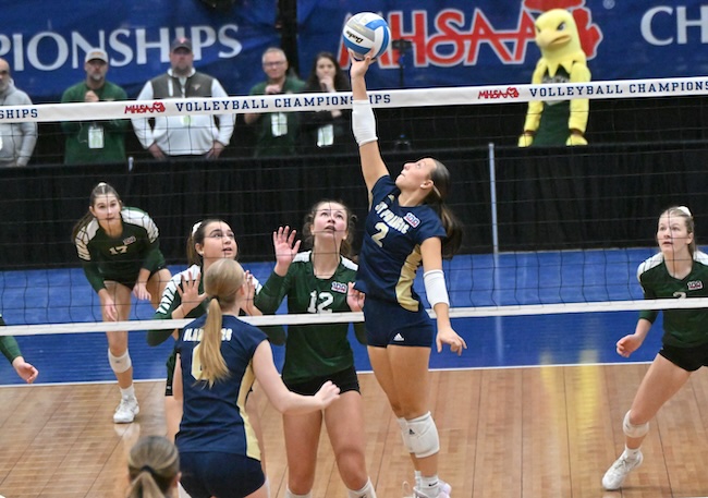 But on Saturday, junior Abby McKinzie had 13 kills and senior Megan Parker added 12 as seven St. Philip players scored. Schaub had 32 assists and was one of five with at least 14 digs – sophomore libero Kameron Haley led with 21, tied for 11th most in an MHSAA Final during the rally scoring era that began in 2004-05.
