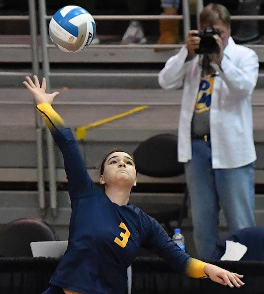 Saige Martin led the Pewamo-Westphalia attack with 13 kills, while adding 12 digs and three blocks. Pohl added 10 kills and 15 digs, while Smith had 36 assists and 11 digs. Sierra Schneider led the front line defensively for the Pirates with five blocks.