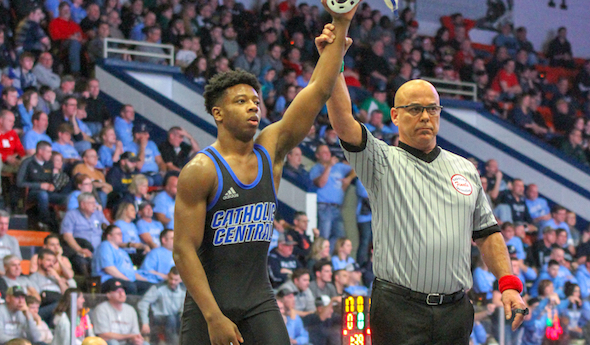The dual started in the heart of Catholic Central’s lineup at 140 pounds, and the Shamrocks jumped out to a 29-3 lead despite it being a strong stretch of the Bulldogs’ lineup as well.