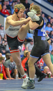 Brighton got on the board at 171, as River Shettler won by decision, but the Shamrocks rattled off four straight, starting with a decision from returning champion Easton Turner at 189. Brendin Yatooma (215) and Steven Kolcheff (285) also won by major decision, while Anthony Walker (103) won a decision.
