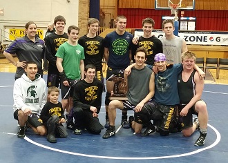 Frankfort defeated Fife Lake Forest Area and Traverse City St. Francis to claim the District. Freshman Kody Michel's win at 152 pounds decided the outcome in the 42-36 finale with St. Francis.