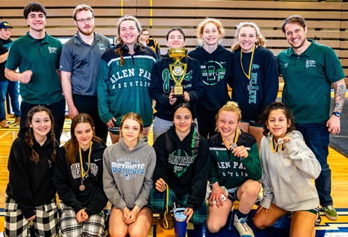 Other individual winners were Tierra Taylor of Gibraltar Carlson at 100 pounds, Catherine Warlick of Dearborn Heights Annapolis at 105, Alyssa Campbell of Allen Park at 110, Trinity Munoz of Detroit Voyageur College Prep at 115, Melody Carr of Southgate Anderson at 120, Kerrington Fields-McCurdy of Livonia Stevenson at 125, Brynna Alwell of Allen Park at 130, Adeline Tuccini of Allen Park at 135, Nanda Kibi of Plymouth at 140, Rihanna Venegas of Riverview Gabriel Richard at 145, Blessing Bongi of Westland John Glenn at 170 and Mya Brandenburg of Allen Park at 235 pounds.