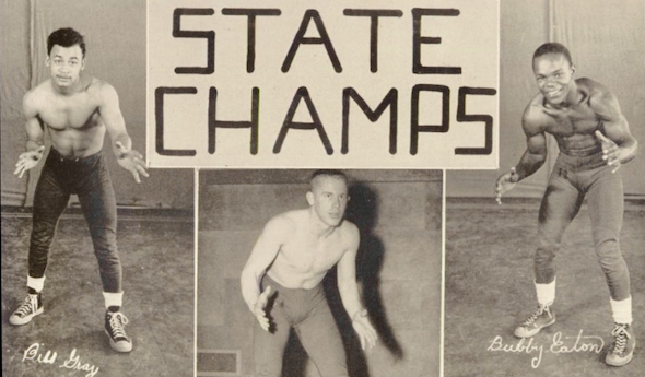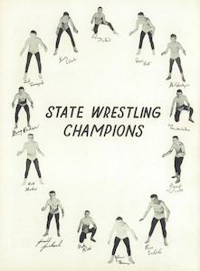 “It is not the kind of wrestling one has watched on television or in some of the professional arenas around the state,” he added, trying to educate the public about the difference between the prep sport and the form of broadcast entertainment then popular. “Groans and grunts have no part in high school wrestling … nor does hair pulling or stamping the feet … or pointing a finger into the referee’s eye.”