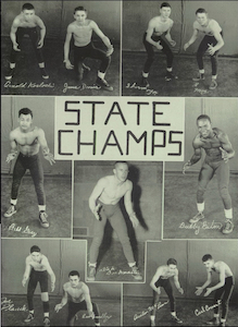 Eastern and coach Don Johnson grabbed the first of two consecutive titles in 1951, topping Ann Arbor, 56-52, with East Lansing finishing a distant third with 26 points. Pete Christ of Battle Creek Central became the first Bearcat (and only the second athlete from a school other than Eastern, Sexton or Ann Arbor) to bring home an individual wrestling title, with a decision over Lansing Eastern’s Vince Malcongi in the 140 classification. “The Bearcat matmen took fourth in the State,” according to the Battle Creek yearbook. “Mr. Donald Cooper took over the coaching duties when Mr. Allen Bush was called to the Marines.” (Bush would later serve as executive director of the MHSAA).