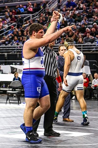 Starting from scratch: “I had about a month of wrestling in eighth grade. (But) I really wanted it, and my coaches don’t really let me take reps off. It’s either give everything you have, or don’t do it. Honestly, I’d heard (DCC wrestlers) win a lot, and I love to win, love to compete, and that was a big part of it for me. Around the middle of my sophomore year I saw guys like Myles (Amine), Trevor (Zdebski), how they kept advancing through the season and getting better although they were returning state champs. Everything clicked then. (They taught me) never stop getting better. You’ve got to keep going and going. Wrestling is a hard sport. You’re going to have ups and downs, but if you listen to what your coaches say and do the right things, you’ll have greatness in it.”