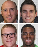 PHOTOS: (Top) Logan Kennedy lines up against Leroy Pine River's Andrew Frisbie during last season's Division 4 Quarterfinals. (Middle) Clockwise, from top left: Decatur coach Jack Richardson, Coy Helmuth, Fritz Williamson, Kennedy. (Below) The Decatur bench cheers on a teammate while Richardson offers support. (Click to see more action photos from HighSchoolSportsScene.com; head shots by Pam Shebest.)