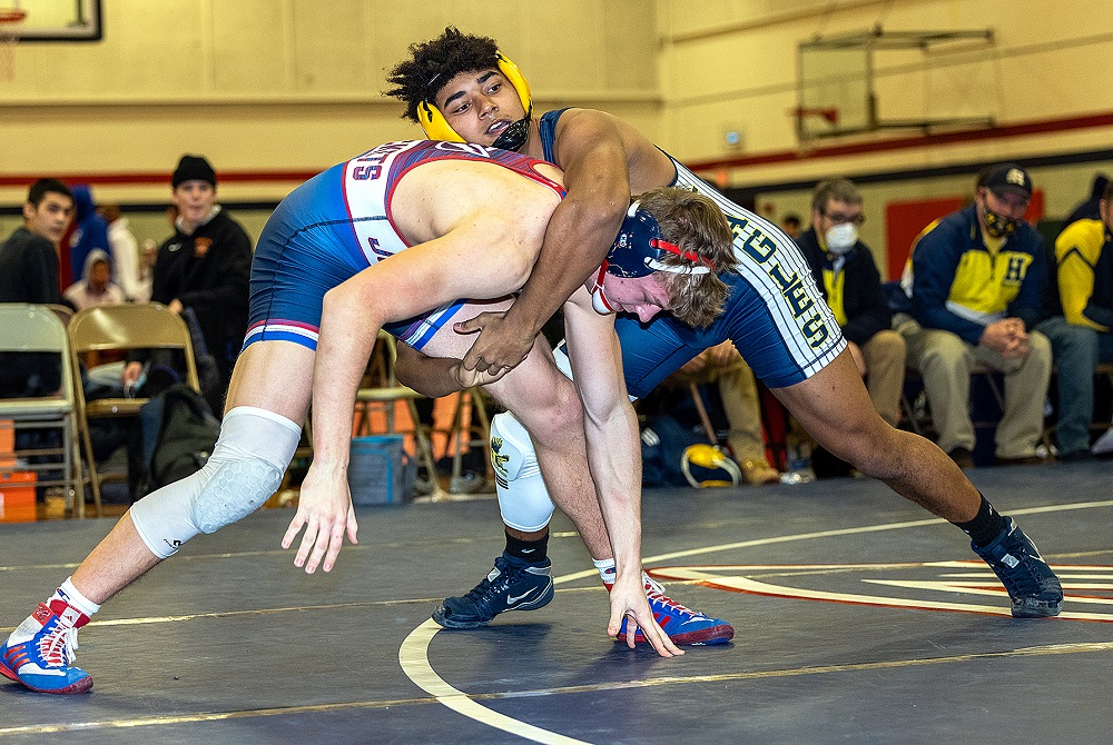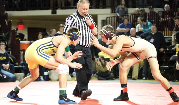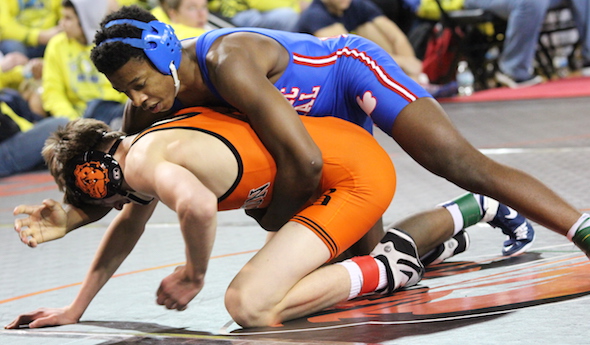 Davison's Caden Horwath, top, works for control against Grosse Pointe South's Wyatt Hepner in their championship match Saturday at Ford Field.