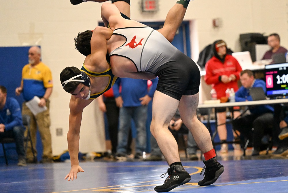 Detroit Catholic Central’s Dylan Gilcher wrestlers during his team’s Division 1 championship match last weekend at Wings Event Center.