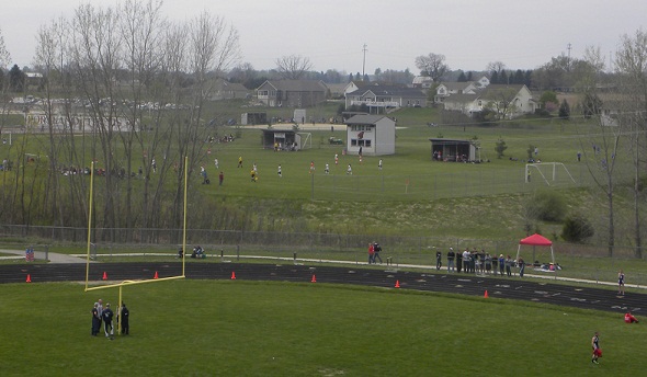 PHOTO: From the football stadium press box, one simultaneously could watch track, soccer and softball competitions at Portland's Spring Sports Carnival, despite an overcast sky when this photo was taken. (Photo courtesy of Portland High School).