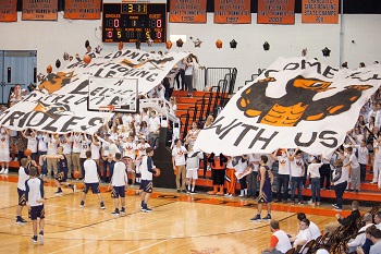 The breakdown: In two years, Charlotte’s student section has come from nonexistent to become a two-time BOTF finalist. As we learned during our 2016 trip, it was hatched during a series of January 2015 snow days, when student leaders took advantage of the break by meeting and forming a Flight Club to give more support at first to the school’s basketball teams and then to all Orioles athletes. The section gained steam over the course of last school year and especially last winter during a strong start for the boys basketball team, and despite graduating nearly all of its leaders last spring returned in force this fall to become a regular part of student life at the school.