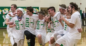 PHOTOS: (Top) The Bleacher Creatures, 400 strong, stand together during Thursday's boys basketball game against Traverse City Central. (Middle) The Creatures follow their leaders in a chant. (Below) Leaders of the section pose after a halftime dance at center court. (Photos courtesy of Rick Sack.)