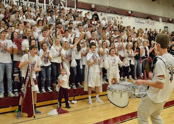 As with our first two finalists tour reports on Petoskey’s Blue Crew and Boyne City’s Rambler Rowdies, below is our review of an evening hanging with the Bucks. Following again the format of a typical game night, we begin with the Herd’s suggestions for other student sections getting started and video from our visit and then tell more of the story behind a group that continues to rock the bleachers.