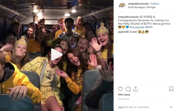 An elementary school night allowed families to attend games for $1 if their children were wearing Norse gear. An upcoming throwback game was hatched, and basketball players will be wearing retro uniforms to join in. Impressively, the Nation completed its mandatory BOTF semifinals “takeover” of the MHSAA’s Instrgram at a ROAD game with a “gold out” that made that away gym seem a lot like home (see bus ride post below).
