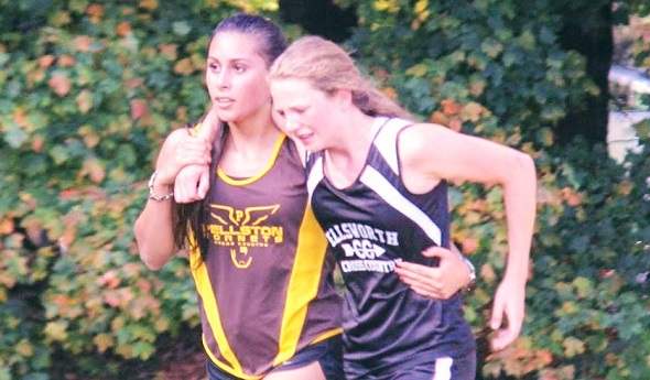 During Ellsworth’s House on the Hill cross country event Sept. 16, Pellston lead runner Alice Principi gave up a probable top-10 finish in the Class D race to assist Ellsworth freshman Judith Veldbloom, who was struggling to finish and went to the ground during the final stretch.