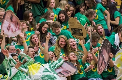 A hockey game in Trenton took those 25 players out of the cheering section, with 50 more performing a play and 25 playing a jazz concert. Still, by Friday’s fourth quarter, at least a few from those other events trickled into the gym to finish the night with their green-clad classmates.