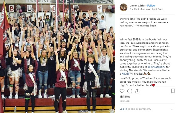 BUCHANAN – Watch what’s become nearly a decade’s worth of Buchanan High School “Battle of the Fans” videos online. Check out the four MHSAA BOTF banners – including two for championships – hanging side by side on the far wall of the school’s gym.