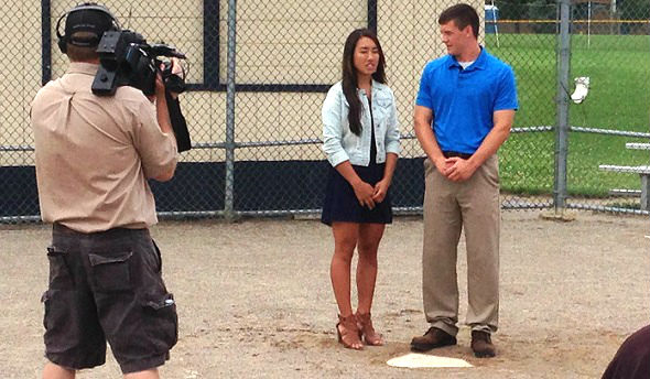 PHOTO: Lapeer's Caycee Turczyn and Marlette's Connor Thomas host the online Captains Course, with this segment shot at DeWitt High School.